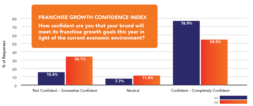 Participants were asked to share their confidence level on a scale of 1 (not confident) to 7 (completely confident) if their respective brand will meet its franchise growth goals this year. Respondents were then asked four supporting questions with relevant economic concerns in mind to gauge which conditions, if any, have impacted their confidence level either positively or negatively since last quarter.