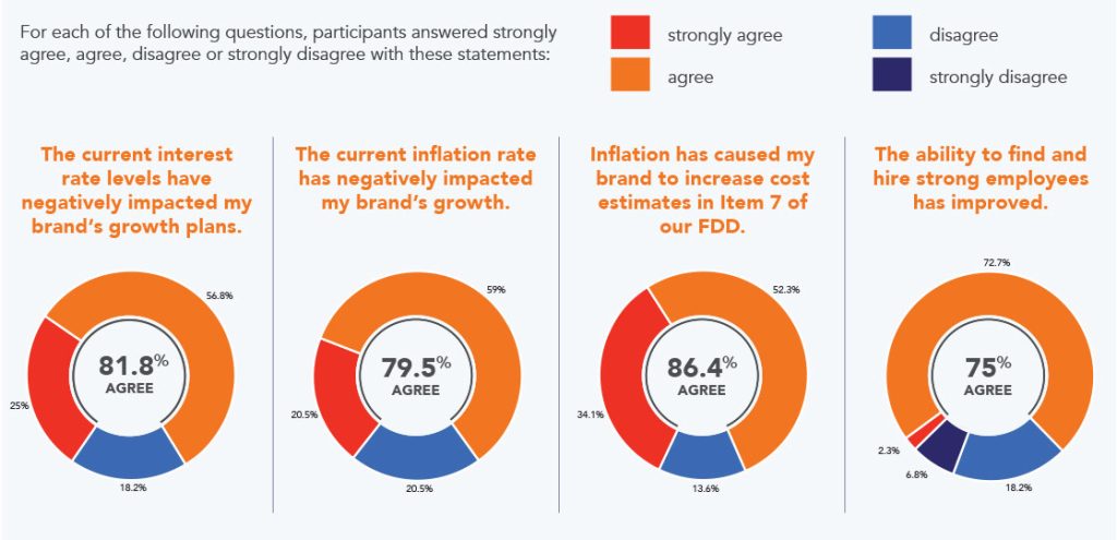 - When asked whether inflation has caused franchisors to increase cost estimates in Item 7 of their FDD, an overwhelming majority (86.4%) agree, concluding that inflation remains a major economic barrier to franchisor success.
