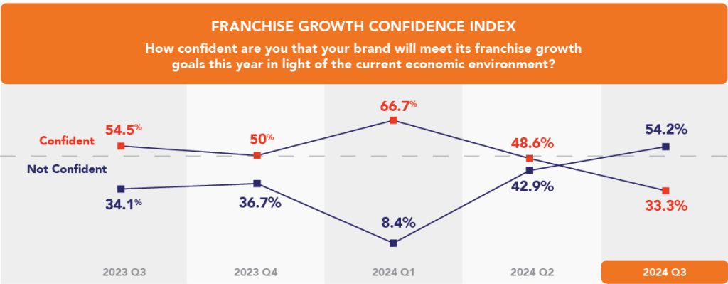The results from our latest Franchise Growth Confidence Index- BoeFly’s quarterly survey measuring how certain economic conditions and external factors affect franchisors’ growth – was recently published by Franchise Times. Between September 19 – October 2, 2024, we surveyed nearly 700 franchisor executives to determine if there were any significant changes in franchisor sentiment regarding domestic franchise growth.