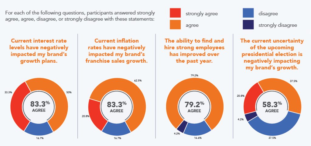 - Regarding labor market conditions, 79.2% of franchisor executives agreed their ability to find and hire strong talent has improved their ability to find and hire strong talent has improved over the past year, reflecting an uptick in franchisors’ ability to find, hire, and retain talent successfully.