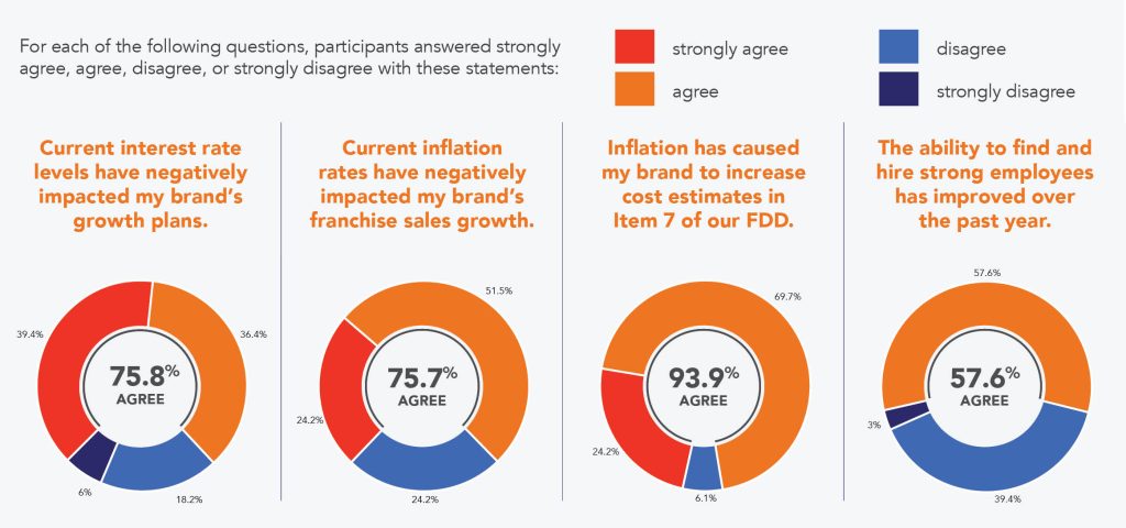 - Additionally, 93.9% of franchisors indicated that inflation has forced them to increase cost estimates in Item 7 of their Franchise Disclosure Document (FDD), a strong signal that rising costs are directly affecting franchise investment requirements.