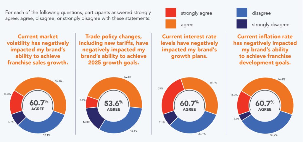 - 60.7% of franchisors said that market volatility from January through April 2025 has negatively impacted their ability to achieve sales growth.