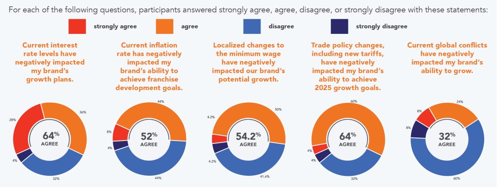 - A new question added this quarter found that 32% of franchisors believe current global conflicts are negatively affecting their ability to grow, notably the smallest percentage among all external factors measured.